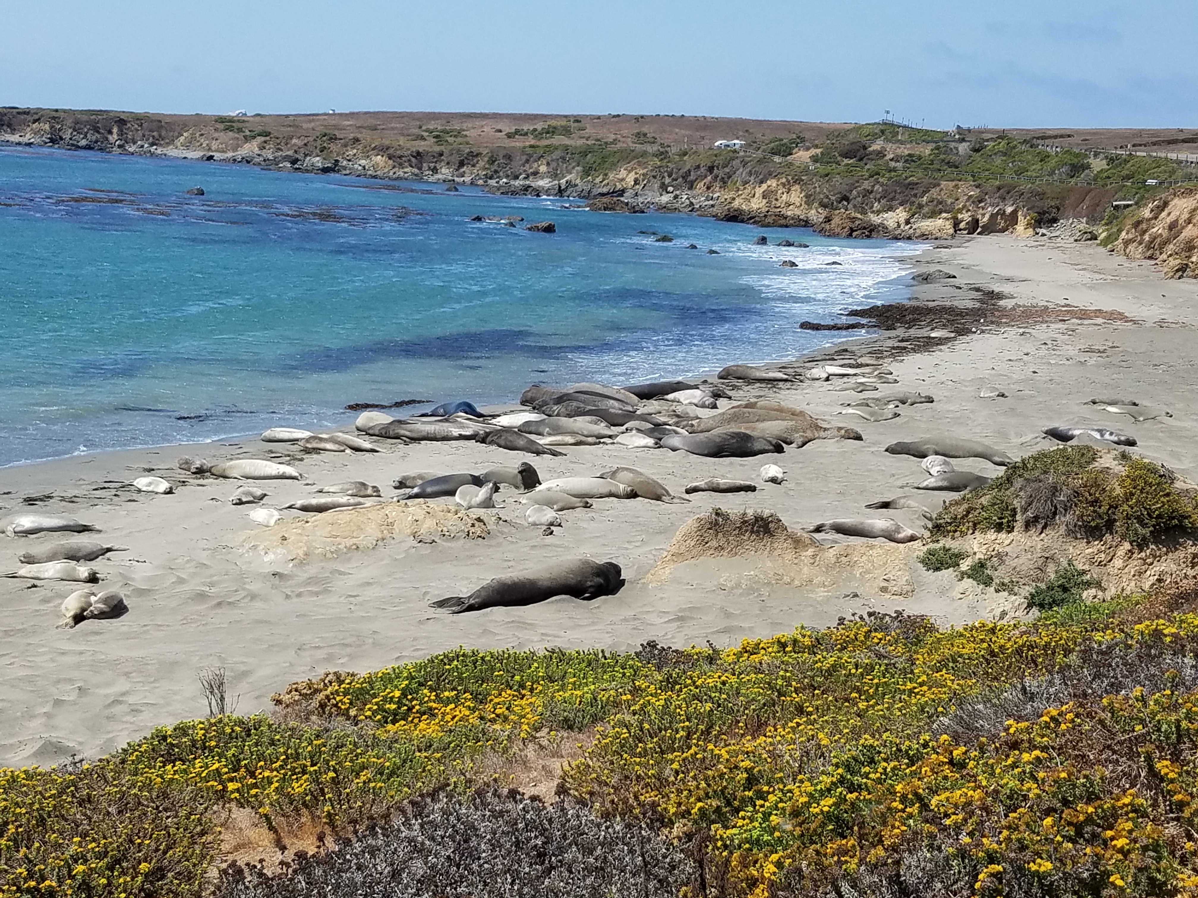 View of elephant seals sunning