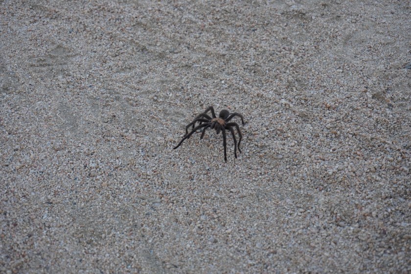 Previous Image Next Image DSC00109 Visitor to campground….yearly mating migration is in October…good luck Mr. Tarantula!